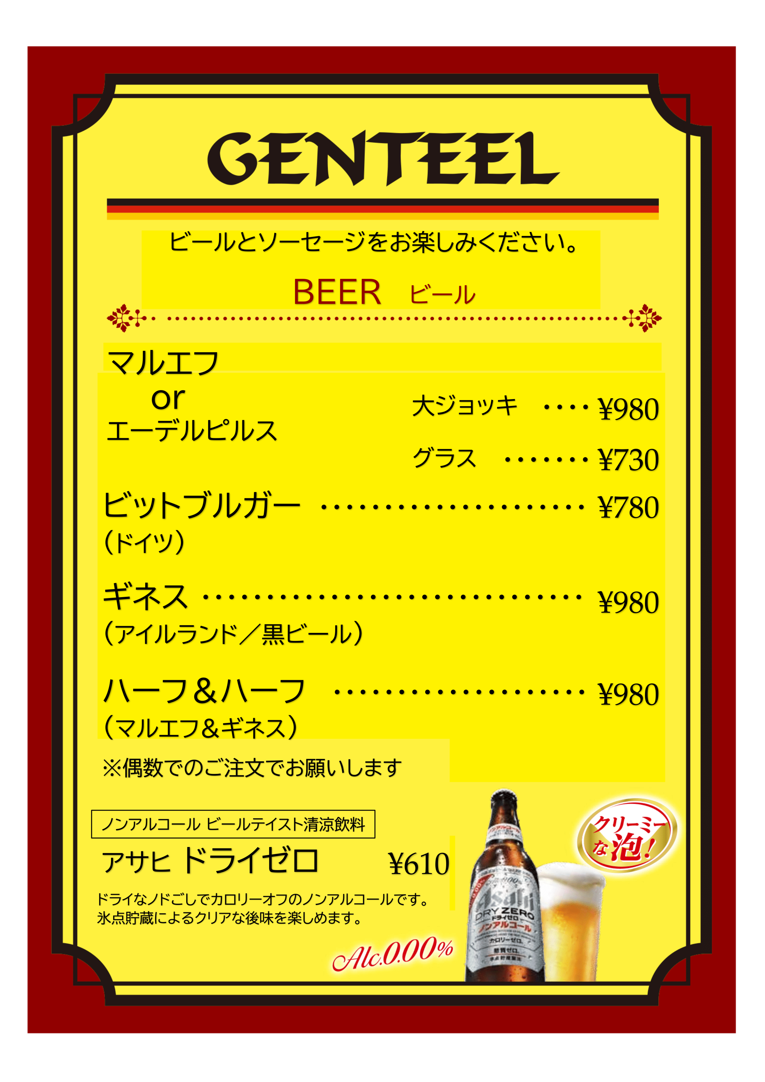 ドイツ料理とドイツビールのお店といえばジェンティール